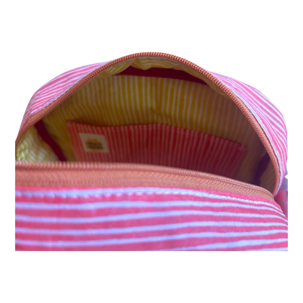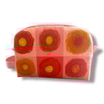This cheerful, handmade bag is perfect for carrying your everyday essentials. It features a sturdy zip closure, an easy-to-grab loop handle, and a handy interior pockets for keeping things organized. Fully lined and thoughtfully crafted, it’s great as a makeup bag, travel pouch, or just a fun pop of personality in your bag or on your shelf. Made with love, and built to brigthen your day!